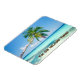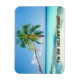 Íman no estilo flexível x 4" com uma imagem de uma praia primitiva, uma palmeira e um céu azul impossíveis e texto opcional. Veja toda a coleção de ímãs de naufrágio nos TOUCHES ESPECIAIS | Seção Favoritos para festas.