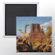 Íman de refrigeração com uma cena do deserto do Vale do Monumento do Sudoeste de um arenito de mitten Stark contra o céu azul. Um belo toque para espalhar sua geladeira se você gosta do Sudoeste ou do viagem em geral. Também um bom favor partidário para qualquer ocasião ou um presente de negócios, especialmente para uma empresa de viagem.