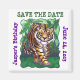 Convites de Aniversário Personalizados, Cartões, Presentes, Lembrancinhas e muito mais do Desfile de Animais Tigre Bonito são para o lado divertido de você com nossa arte original de um tigre caprichoso em pé em uma selva verde sombreada com um céu amarelo e verde texturizado e uma borda verde escura ondulada e divertida. Pintado por nossa talentosa artista infantil, Traci Van Wagoner, nossos acessórios de festa com tema de animais selvagens divertidos são perfeitos para amantes de tigres de todas as idades. Em muitos de nossos acessórios de festa de animais selvagens caprichosos, você verá o adorável tigre-de-bengala entrando e saindo com essa divertida obra de arte da cabeça do tigre fofo na frente e o rabo do tigre bobo atrás. Junte-se ao Desfile de Animais e faça uma festa cheia de animais para o seu filho com nossos acessórios