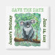 A Imã salve a data do Cute Koala Bear Party Center é parte de uma coleção de material diverso de festa com tema animal apresentando nossa arte de animais amigável para crianças com uma mãe Koala e um bebê nas costas dela — muitos de nossos projetos têm cabeças e caudas para diversão adicional.
