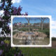 Fotografia do monumento e das bandeiras norte-americanas mostradas no centro geográfico dos cinquenta Estados Unidos em Belle Fourche, Dakota do Sul. Imagem copyright 2018 de Margaret E. Cmelik.