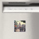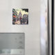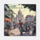 Imagem ai do estilo quadrinhos da área de centro de Kolkata, Índia, Motocicletas estacionadas e cartas. Um ímã com ilustração de movimentada rua de centro com edifícios, restaurantes, compras e pessoas nas suas motos.