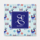 Um ímã com um padrão repetitivo. Ilustrado com um par de veados escandinavos vestindo lenços vermelhos. Com marcas decorativas em seus corpos. Além de um trio de árvores de natal vermelhas e azuis com uma estrela no topo. Flocos de neve rico espalhados. Um quadrado em camadas acima com seu nome e inicial do monograma personalizado.