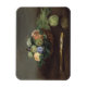 Cesta de Fruta de Edouard Manet, óleo na canvas c. 1864, é uma pintura de vida estática de uma cesta tecida sobre uma mesa de madeira com uma pequena pilha de fruta e uma faca. Pintado em pinceladas largas e fluidas de tinta a óleo aplicada com precisão, a pintura exemplifica a forma achatada e enfatiza o plano fotográfico que Manet pionou. Contra a bruxa, a cinza e a mesa castanha e o fundo, as formas das maçãs, pêssegos e frutas cantam em notas claras de cor, especialmente o tom violeta gelado da ameixa. Recordando o realismo e a vivaciosa obra de Franz Hals e dos Mestrados Holandeses, assim como as qualidades paintais de realistas rococos como Chardin, a vida estática marca o início de muitas das preocupações da pintura moderna. Edouard Manet (1832-1883) era um pintor realista francês e um dos fundadores do movimento impressionista francês, cujas pinturas controversas marcaram a fundação da arte moderna. Ao perseguir a arte jovem, Manet estudou durante 6 anos sob o pintor acadêmico Thomas Couture e em viagens ao exterior encontrou os mestrados holandeses e os pintores espanhóis Velazet quez e Goya. Ao abrir seu próprio estúdio em Paris, Manet produziu muitas pinturas sob a influência do Realismo de Courbet, pintando cenas da vida moderna. Suas obras-primas Luncheon sobre Grass and Olympia, de 1863, suscitaram polêmicas no excelente e, embora o artista continuasse a exibir no Salão oficial de Paris, ele se amou a Degas, Monet, Renoir e outros pintores-chave impressionistas. Pintura de forma solta e esboçada de pincéis e formas achatadas que alguns acharam inacabadas, Manet produziu muitas cenas de noites boêmicas de café, cenas jornalísticas de guerras e eventos atuais, além de assuntos das ruas de Paris com tal espontaneidade e inovação de composição que eles influenciaram duramente as gerações mais jovens de artistas e o consolaram como o verdadeiro "pintor da vida moderna". Embora o artista tenha morrido jovem, Manet criou pinturas que eram a pedra e o ponto de chamada da escola de Impressionismo e dos fundadores da pintura moderna.