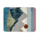 Paisagem moderna com cores e padrões únicos mostrando uma paisagem de montanha com uma linha do horizonte estriada.