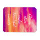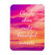 Este ímã tem uma imagem brilhante do céu durante um pôr do sol em cores vibrantes de roxo e amarelo, e palavras encorajadoras: Os céus nublados fazem belos pôrs do sol.