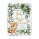 Esta bela design de aquarela apresenta um doce filhote de tigre sentado entre as folhas tropicais da selva. Ele apresenta uma variedade de paletas e fontes decorativas de cor verde, amarelo-ouro e laranja. O convite é totalmente personalizável, portanto você pode adicionar seus próprios toques pessoais.