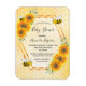 Elegante, chá de fraldas divertido, neutro em relação ao gênero. Fundo amarelo com um padrão de colmeia de ouro. Com uma falsa estrutura geométrica dourada. Amarelo, girassóis cor de laranja e abelhas-deslumbradas. Com o texto: Chá de fraldas e o nome da mamãe a ser gravada na frente com um moderno script de estilo escrito à mão. Letras negras. Não apenas um convite, mas pode ser usado como um lembrete de data para os convidados.