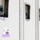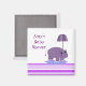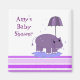 Um design bonitinho com um hipopótamo roxo com um guarda-chuva roxo sombreado, algumas gotas de chuva caindo. Uma borda roxa listrada ao longo do fundo. Personalizar conforme desejado.