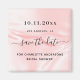 Uma Imã salve a data de moda para um Chá de panela. Uma lâmina cor-de-rosa, fundo de seda. Personalize e adicione uma data e um nome. Letras pretas coloridas. O texto: Salvar a Data é gravado com um script de estilo com letra de tendência grande.