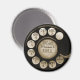 Discagem telefônica retrô em preto e branco com números e letras.