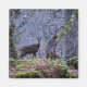 Um par de chamois, mãe e bezerro, tiram um cobrir nas florestas do Parque Natural de Redes (Asturies)