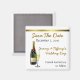 Imã salve a data de champanhe elegante, com uma garrafa de champanhe, um copo de champanhe e uma fita de tom de ouro no topo. Personalize o texto para qualquer coisa que você queira torná-lo pessoalmente seu.