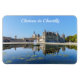 Vista do Chateau de Chantilly do Jardim do Le Notre com uma fonte em primeiro plano e reflexo do castelo numa lagoa - França