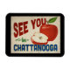 Um charmoso imã de viagens vintage Chattanooga Tennessee com uma linda maçã vermelha, junto com um texto divertido no estilo retrô que diz, "Até mais em Chattanooga"