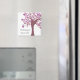 Um design bonitinho com um grande cheio de árvores de corações em tons de rosa e roxo com folhas verdes macios.