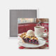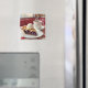 Íman bonito com uma ilustração de torta de cereja com sorvete de baunilha no topo com uma xícara de café quente no restaurante.