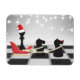 Esta engraçada design de ímã de Natal apresenta Papais noeis e renas. O Papai Noel é a peça de xadrez do Rei vestindo um chapéu de Papai Noel e as renas são duas peças de xadrez do Cavaleiro. Eles estão num tabuleiro de xadrez em frente a uma cena de neve de inverno com luzes de férias.