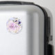 Magneta e chic com espirais de unicórnio arco-íris azul mármore, um quadro floral dourado com flores azuis e cor de pêssego, e um fundo cor-de-rosa pincelado. Seu nome personalizado e monograma estão escritos em um roteiro elegante, escrito à mão. Você pode alterar a cor do texto, o estilo e o tamanho da fonte usando a opção personalizar.