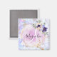 Magneta e chic com espirais de unicórnio arco-íris azul mármore, um quadro floral dourado com flores azuis e cor de pêssego, e um fundo cor-de-rosa pincelado. Seu nome personalizado e monograma estão escritos em um roteiro elegante, escrito à mão. Você pode alterar a cor do texto, o estilo e o tamanho da fonte usando a opção personalizar.