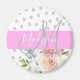 Íman de chic e monograma feminino com flores cor-de-rosa floral primavera e cor-de-pêssego e um fundo branco com bolinhas cinzas. Seu nome personalizado e monograma são escritos em um elegante roteiro branco e cinza com letras de mão com um fundo rosa. Você pode alterar a cor do texto, o estilo e o tamanho da fonte usando a opção personalizar.