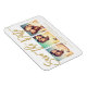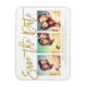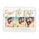 Esta elegante e moderna imã salve a data de 3 fotos apresenta uma bela letra de pincel em ouro. Visite o compro para ver o resto da coleção da suíte Dourada de Tipografia Chic.