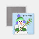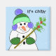 Um boneco de neve, todo empacotado em um punho, pulgas e luvas, segurando um galho de bagas sagradas.