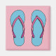 Uma ilustração de um par de chinelos de praia cor-de-rosa e azuis. É verão! O vamos faz uma pausa e diverte-te debaixo do sol. Você não está animado em preparar suas coisas para as férias? Não esqueça seus chinelos.