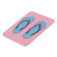 Uma ilustração de um par de chinelos de praia cor-de-rosa e azuis. É verão! O vamos faz uma pausa e diverte-te debaixo do sol. Você não está animado em preparar suas coisas para as férias? Não esqueça seus chinelos.