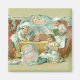 Crianças cozinhando com chocolate - Sucard de chocolate, ou Açúcar de chocolate, é a primeira etiqueta deste cartão publicitário de chocolate francês de excelente. A arte publicitária da vintage mostra três crianças, vestidas como padeiros adequados com chapéus de chefs e pombos. Estas crianças estão na cozinha vitoriana, trabalhando com chocolate em volta da mesa antiga. A garotinha está sentada no chão na frente, ralando seu chocolate. O padeiro do menino à direita está lendo receitas de seu livro de chocolate. O chef da esquerda está abrindo um pacote de bares de chocolate, todos prontos para comer, mas sabemos que todos os bons padeiros realmente usam seu chocolate para assares e outros doces de chocolate, e eles realmente não comem o chocolate até que esteja bem cozido. A decoração de fundo é um padrões vitoriano muito ornamentado, com uma placa azul e branca sobre o fundo, e espirais de azul, branco e castanho sobre o fundo desta imagem publicitária antiga. As crianças estão vestidas de azul, verde, vermelho e branco.