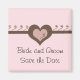 Design elegante em chocolate marrom e rosa poeirento com coração e design de rolagem elegante. Lembre os amigos e a família para salvar a data do seu grande dia!