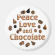 Amantes de chocolate sabem que para ter paz e amor em sua vida, você precisa de chocolate. Aproveite esta design deliciosa com as doces de chocolate e as palavras Amor pela Paz e Chocolate.