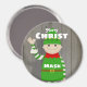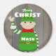 Personagem de elfo bonito segurando uma máscara facial. O texto diz "Máscara de Cristo de Feliz"