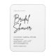 Convide os convidados para celebrar a noiva com esses convites de chá de panela modernos e minimalistas em preto e branco clássico. O design simples apresenta "chuva de noiva" em letra cursiva casual manuscrita, com os detalhes do seu evento abaixo em letras modernas em cinza suave preto.