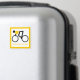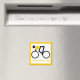 Ciclista montando seu ímã personalizado de bicicleta que mostra um ícone minimalista de uma silhueta de ciclismo preto vestindo o topo amarelo e seu texto sobre fundo branco com borda amarela.