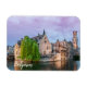 Pintura da cidade antiga de Bruges e da torre de Belfry com céu cor-de-rosa durante o pôr do sol, Bruges, Bélgica.