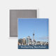 Auckland City e Skytower num dia ensolarado claro, Nova Zelândia. Exibido no Porto de Waitemata.