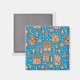 Padrão vetorial desenhado à mão com várias casas de pão de gengibre, árvores de abeto, flocos de neve e biscoitos crescentenários em azul com neve caindo