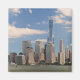Em pé no Parque Estadual da Liberdade, tão perto que você pode praticamente pegar os prédios. Enfrentando-nos é a Torre da Liberdade, bem ao lado dela, é onde as torres gêmeas estiveram uma vez. A extrema direita é onde a linha do círculo cai. Vocês podem ver toda a extensão e história de uma cidade, dos edifícios menores, à esquerda. Mudando-se para o edifício Empire State, o prédio de Chrysler, e então indo para todos os novos edifícios, que parecem ficar mais coloridos.