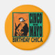 Fabuloso retrô gráfico de alguém, talvez Zapata, e as palavras Cinco de Mayo Birthday Chica! Rapariga de aniversário no dia 5 de maio. Em excelente ao sul da borda das cores verde e laranja. Pela aniversariante Cinco de Mayo em sua vida!