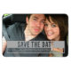 Imã salve a data moderna simples, mas moderna, de recorte em cinzas com design de tipografia nítida com texto recortado. Esta imã salve a data elegante é fácil de personalizar com uma fotografia fofa e os detalhes do seu casamento. Clique em "Personalizar" para encontrar mais opções de personalização.