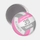 Este ímã temático de vôlei com nome de equipe personalizado apresenta a imagem realista de um vôlei com telas cor-de-rosa, cinzas e painéis brancos sobre os quais você pode personalizar o nome do jogador & jersey number mais nome de escola ou clube e nome de mascote em uma letra estilo varsity - por katz_d_zynes