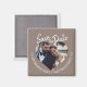 Foto em cinza taupe com ímã de salvar a data com fonte moderna, apresentando uma janela de foto em forma de coração, fundo macio em cinza taupe e texto em fonte manuscrita em branco. Este design destaca sua foto de noivado, exibindo claramente a data e o local do casamento em uma paleta neutra e quente que complementa estilos de casamento clássicos e modernos. Ideal para casamentos, celebrações de destino, renovação de votos ou noivados elegantes onde se deseja sofisticação discreta. Personalize facilmente com seus detalhes.