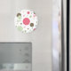 Um item de padrão de círculo de modo feminino com círculos bonito de padrão de gingham rosa, verde e castanho e flores e formas retrorreflectoras fofinhas.