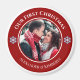 O design tem uma estrutura de círculo vermelha e branca no lado externo e textos que podem ser personalizados no lado superior e inferior. Substitua a foto no centro por sua própria foto. Vai fazer um belo costume fazer presentes para um casal, amigos ou família.