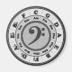 Preto e branco, com uma clave de baixo no centro.