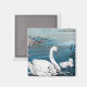 Esta imagem de vintage tem lindas nadarias brancas de mãe e bebê nadando em um lago numa cena da natureza da floresta. A ilustração é feita em blues, latas e brancos. Veja minha loja Art by MAR para combinar produtos com este design.