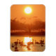 Impressionante e romântico vista cênica de cisnes na silhueta num lago ao nascer do sol.