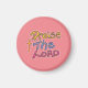 Ímã de Citação Cristã ‘Louvado seja o SENHOR’ Rosa. Personalize ainda mais alterando a cor do fundo com a ferramenta ‘Editar design’. Aproveite!