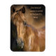 Este ímã tem uma imagem aproximada de um cavalo marrom e uma citação de uma pessoa desconhecida: A história da humanidade é carregada no fundo de um cavalo.